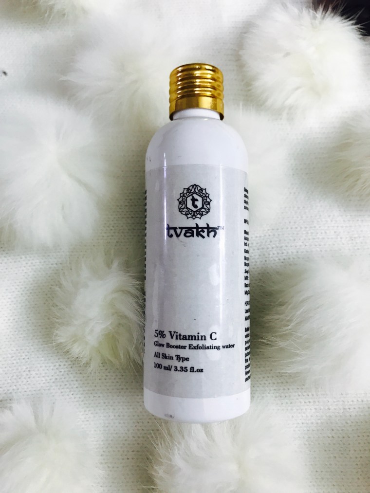 - Tvakh-Glow Water: It is a leave on exfoliating water that fights mild to moderate acne, scars and uneven skin tone. I would like to call it the magic water. All you have to do is leave it on and it works magic on your skin.