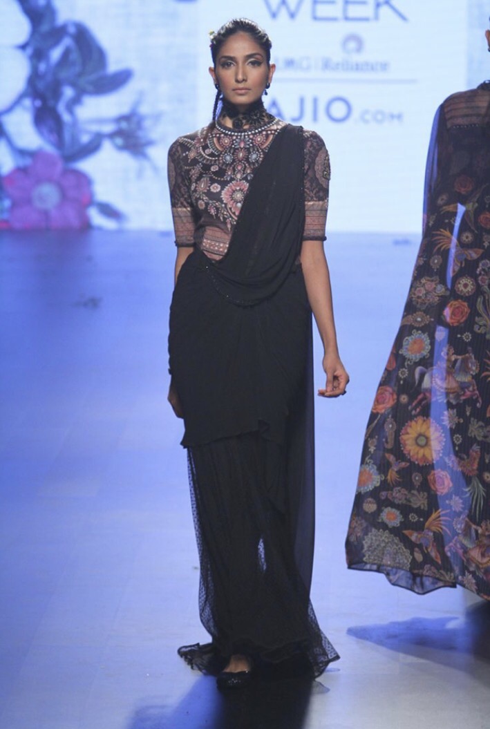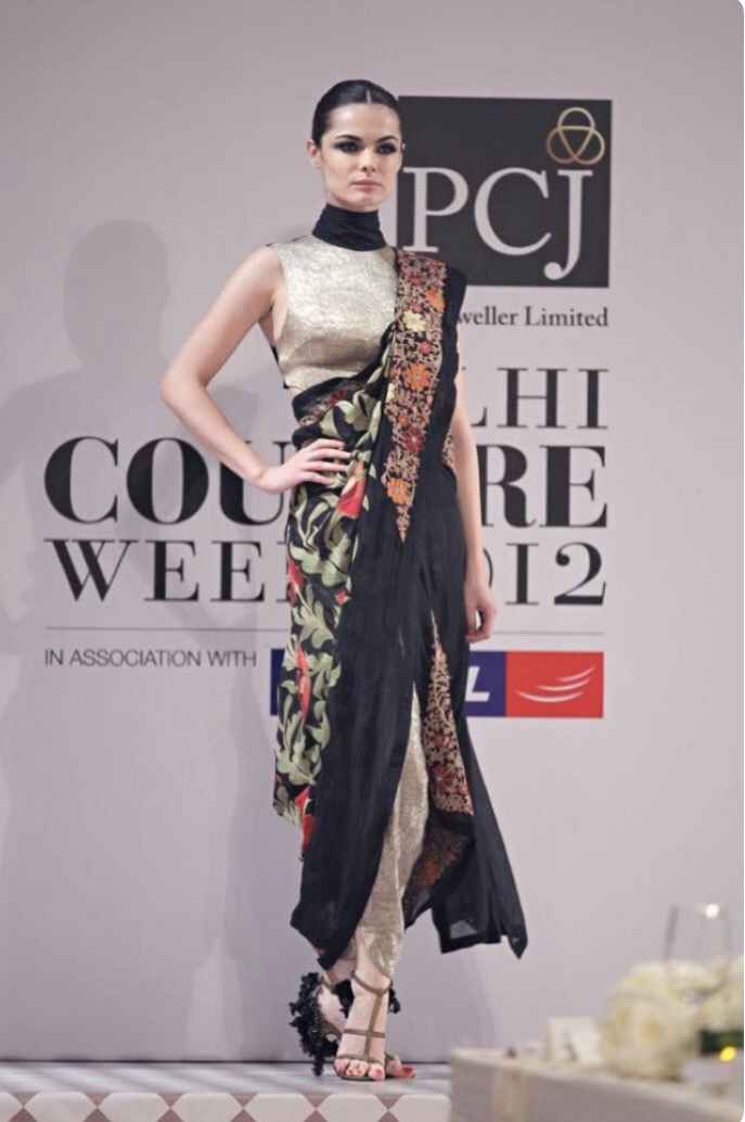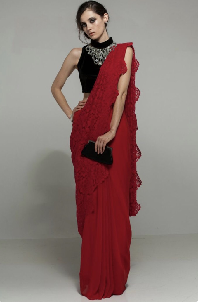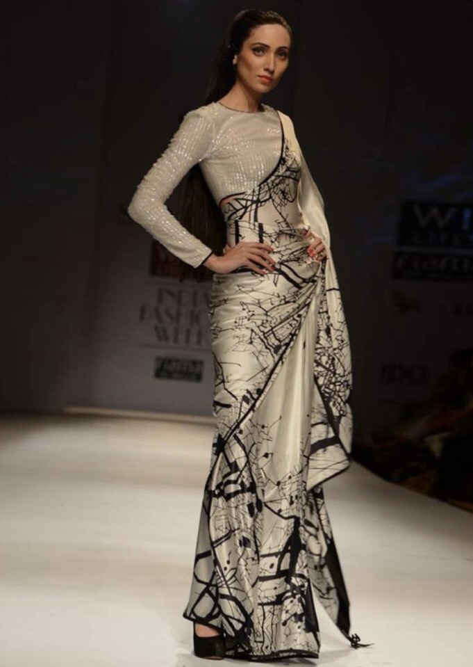 - Go Metallic : Metallic with half net is Oh, so hot! Look at the classy way to drape it.