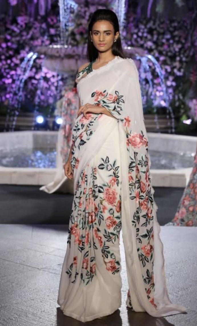 - Floral Embroidery : Floral embroidery is must-have in this summer. These sarees are perfect for any lunch or day party.
