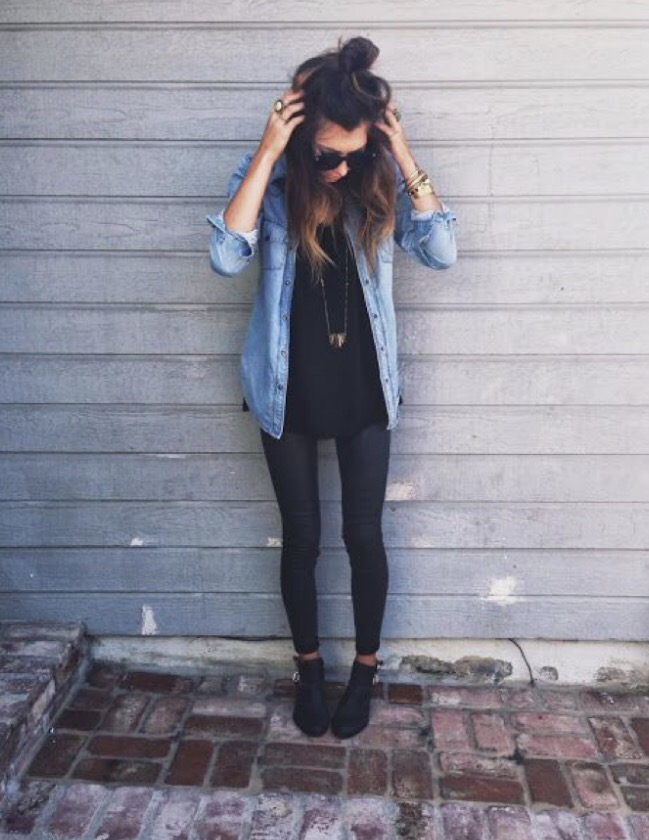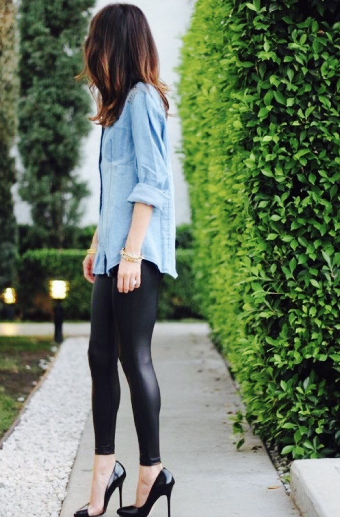 - Denim With Leather : Denim shirt with leather bottom is Oh! So Hot…! My favorite is leather skirt with denim shirt.