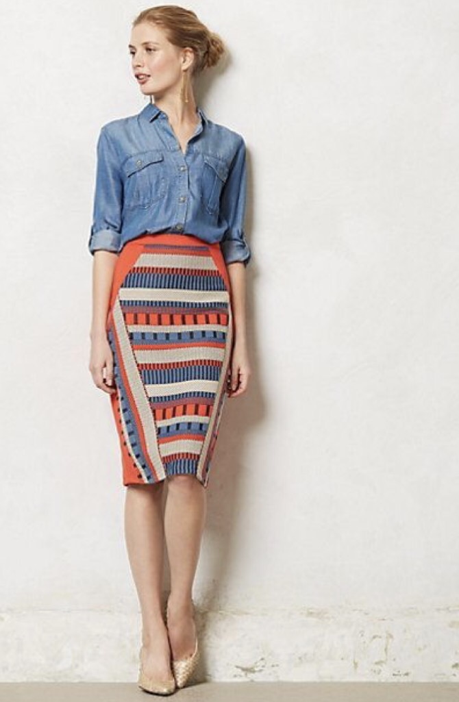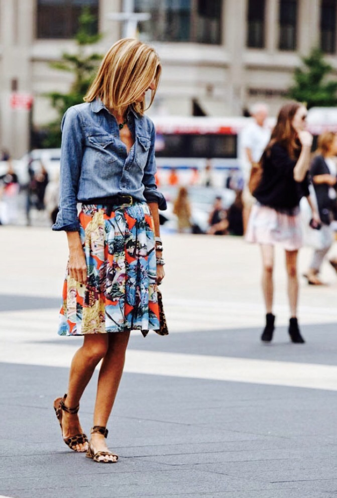 - Printed Skirt : Denim shirt looks really hot with the printed skirts. Summer is always incomplete without refreshing prints. Denim can make it look even more refreshing and it can be paired with every kind of printed skirt.