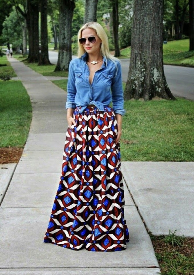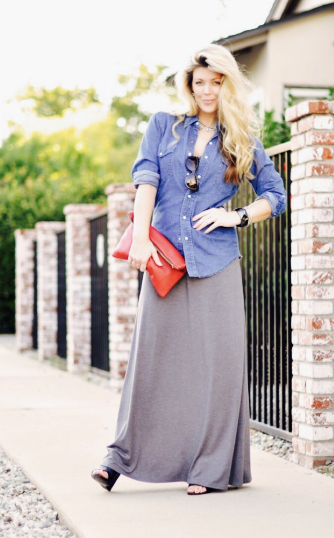 - Maxi Skirt : Denim shirt with maxi skirt is my favorite. It gives maxi skirt a classy twist.