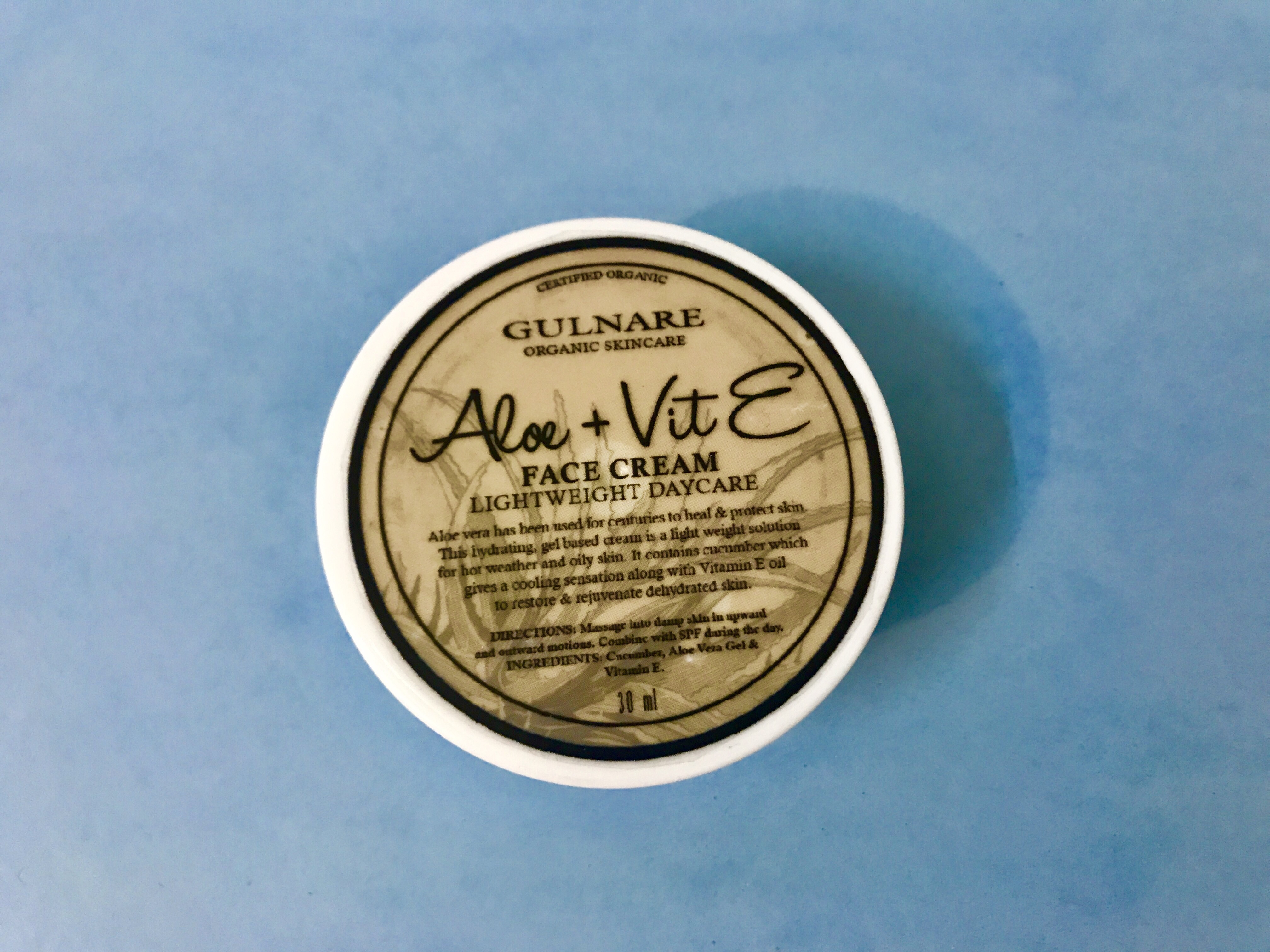 - Gulnare- Aloe & Vit. E Face Cream: Gulnare Skincare offers handmade 100% natural products. The benefits of Aloevera are well known to all of us. It is used under the eyes as a treatment for dryness and wrinkles.