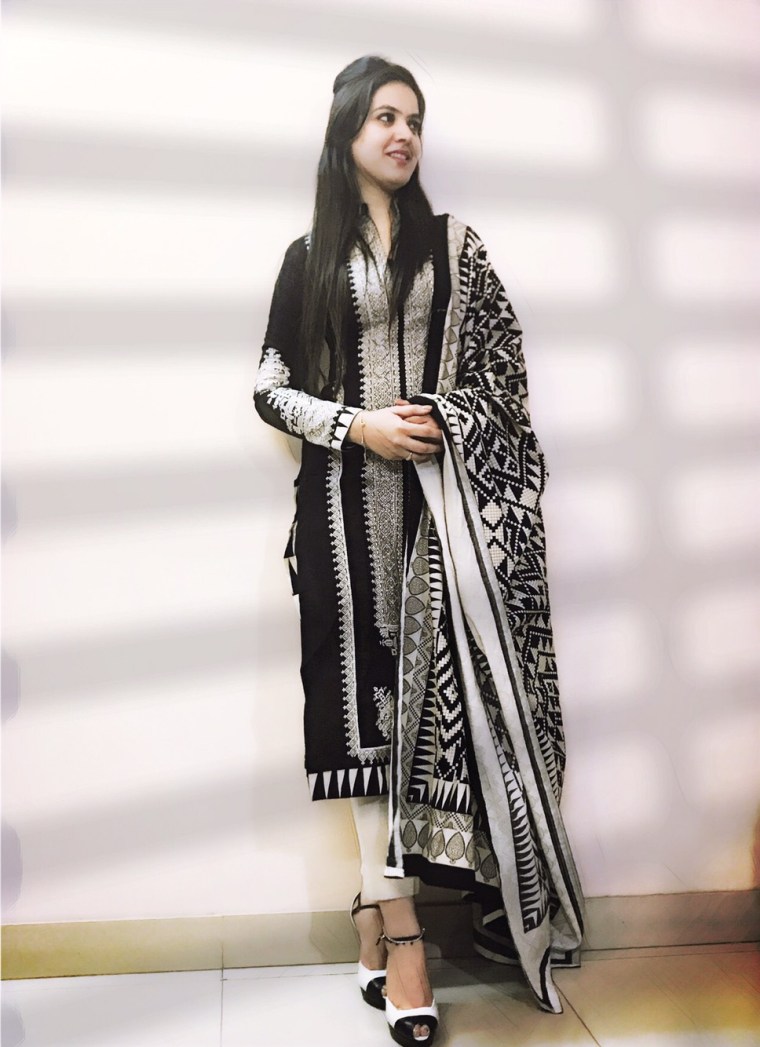 Whenever I hear the word Festival, the first thing that crosses my mind is, What To Wear? Eid is already here and it’s the time to talk about our outfits. I created a simple yet elegant look for this auspicious occasion. I wore a suit by Gul Ahmed. It is a black and white suite with a nice embroidery in the front and lovely print on the back. Dupatta is really awesome with a perfect print all over it. I got the trouser stitched with it, that gives it a lovely look.