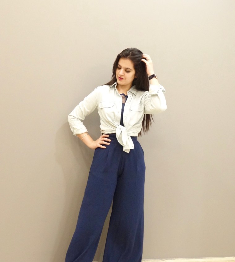 We spend a huge amount of money on a single piece of jumpsuit. Repeating a jumpsuit can be really difficult sometimes You can easily repeat the separate pieces without getting noticed as compared to the jumpsuits. Today, I am going to show you guys the different ways to style a single jumpsuit. I used this wide leg navy jumpsuit, to create the Different looks.