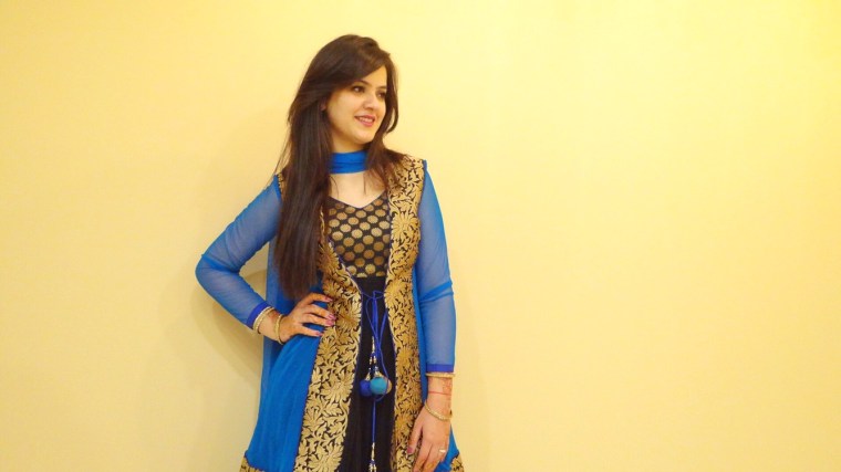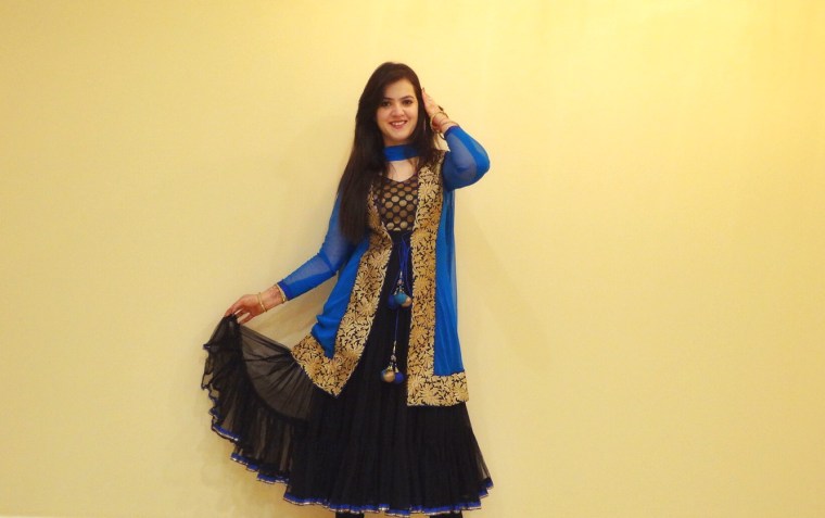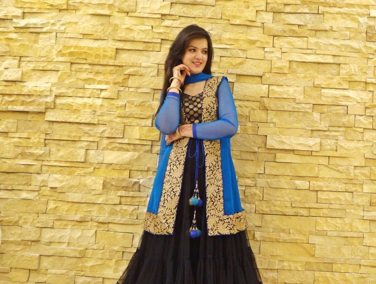 I wore an Anarkali Black suit with the golden embroidery and the blue ethnic jacket. The suit is really beautiful in its own way. The golden details are something to die for. I couldn’t help but drool over it. I paired it up with the minimal golden bangles and minimal jewellery. I couldn’t help but share this one of my favourite looks with you all.