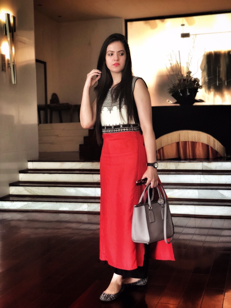 - Athletic/Rectangle Shape: This body type is not curvy, the weight is distributed evenly throughout the body. The shoulder and hip measurements are nearly same. The best way to style your ethnic for this body type is by balancing the body. If you are wearing a long kurta, pair it up with a legging. In case you like kurta with short length then pair it up with the palazzo or a skirt. Anarkali and A-line kurta also works for this body type. You can even rock the deep neckline or sleeveless kurtis. Ethnic jackets look the best on this body type. A short ethnic jacket with a Sharara looks amazing.