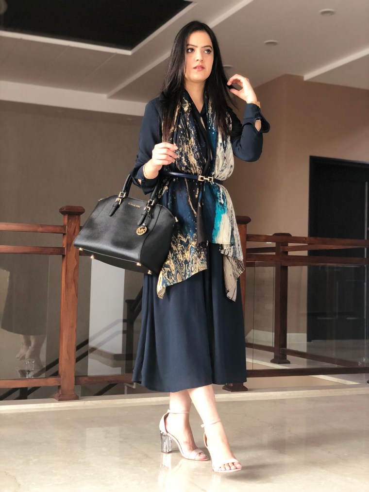 Rakhsha Bandhan is around the corner, but what to wear this year is something really hard to be answered. Most women prefer Indian ethnic wear for such occasions, but that would be too mainstream. So, I decided to do something with a silk scarf and my super comfy western dresses. When I looked at my shirt dress and scarf, the first thing that crossed my mind was Anushka Sharma’s Glam look at London Fashion Week. I do remember her look because I loved her look a lot. All it took was a google and keywords to find that look for me and I decided to recreate it without any second thoughts.